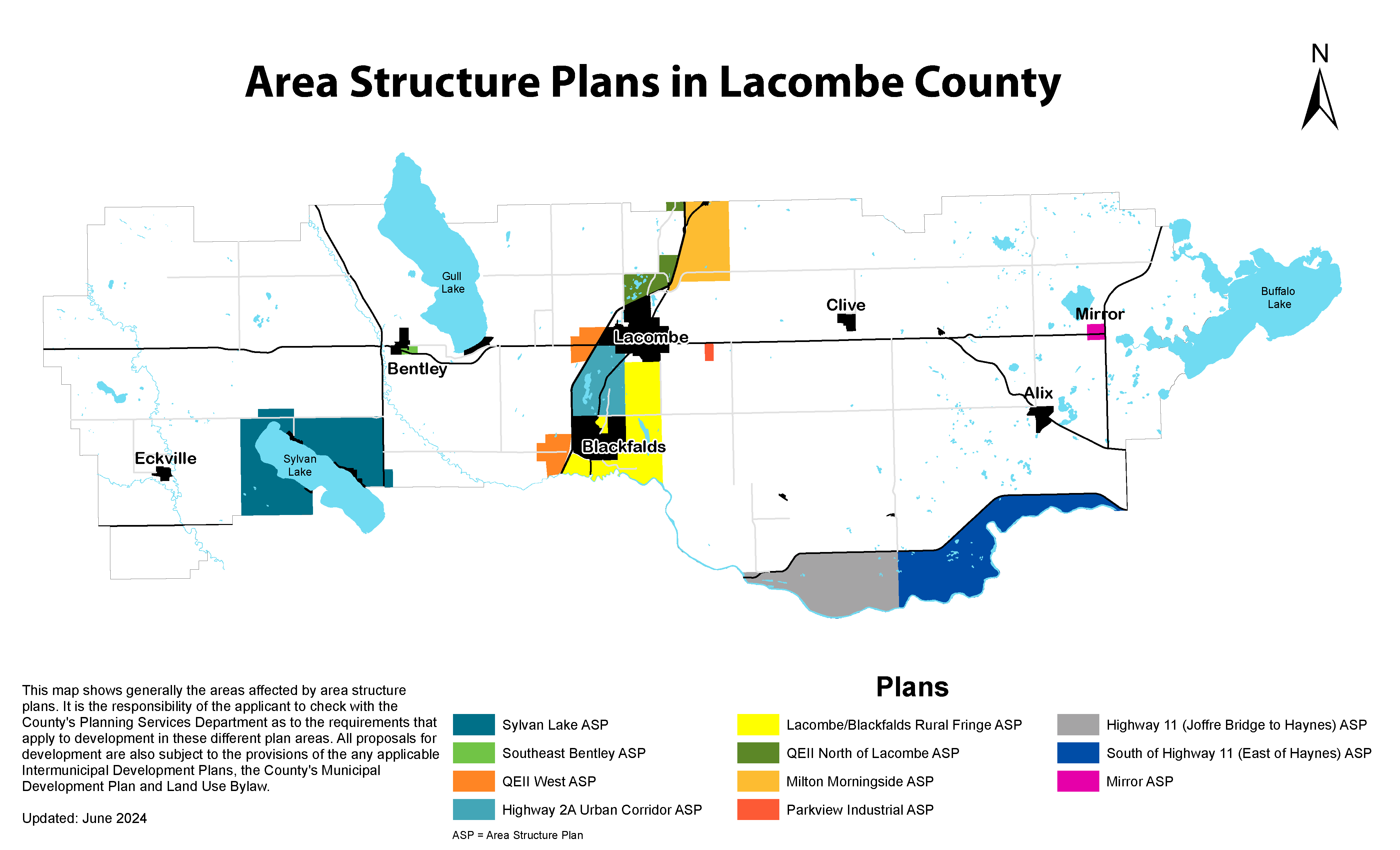 Area structure plans hone into specific parts of the County and provide a framework for future development and subdivision. An area structure plan outlines what land uses can be considered on which parcels of land, subject to a rezoning process under the County's Land Use Bylaw. Furthermore, it outlines the studies that would be required for any development proposal and the standards to which all new development would be held to.